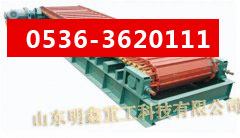 二、用途和使用范圍 GBZ型重型板式給料機廣泛應(yīng)用在采礦、冶金、建材和煤炭等工業(yè)部門 。該機主要用于具有一定倉壓的料倉和漏斗下面,將各種大容重物料短距離均勻、連續(xù)的輸送給各種破碎、篩分和運輸設(shè)備,特別是用在初碎以下更為合適。它不僅合理處理粗物料,對細粒物料也同樣適應(yīng)?稍趷毫拥沫h(huán)境中完成繁重的工作,對物料的粒度成份的變化,溫度、粘度、冰霜、雨雪的影響或冰結(jié)的物料都有較大的適應(yīng)性,給料量均勻準確可靠。在使用過程中不允許卸空物料及大塊物料直接沖擊鏈板表面,更不允許在鏈板表面進行爆破。 安裝傾角為0~25°,傳動裝置可左裝或右裝,在物料運行方向右側(cè)為右傳動,反之為左傳動。 三、特點 1.給料機的給料速度按下列系列選取,其偏差不得超過±10%: 2.傾斜安裝時附有防止輸送鏈逆轉(zhuǎn)的制動裝置。 3.驅(qū)動裝置采用直交行星串聯(lián)組合式減速機傳動,重量輕、機械效率高、壽命長、結(jié)構(gòu)緊湊、占地空間小。 4.主軸裝置采用無鍵光軸,主軸與鏈輪、星輪均采用脹套聯(lián)接方式,其機器的安裝、拆卸、維修十分方便。 5.鏈板裝置采用雙圓弧搭接結(jié)構(gòu),保證使用過程中不漏料。 6.采用坦克鏈作傳動鏈,具有節(jié)距誤差小,無需潤滑,安裝維修方便,具有良好的互換性和較長的使用壽命。 7.應(yīng)用帶導(dǎo)向的支重輪和尾軸上的改向光輪嵌入鏈環(huán)的內(nèi)鏈環(huán)之間的結(jié)構(gòu),****地解決了跑偏這一問題。 采用復(fù)合彈簧式緩沖拉緊機構(gòu),減少了沖擊破壞,延長了整機的使用壽命。 |